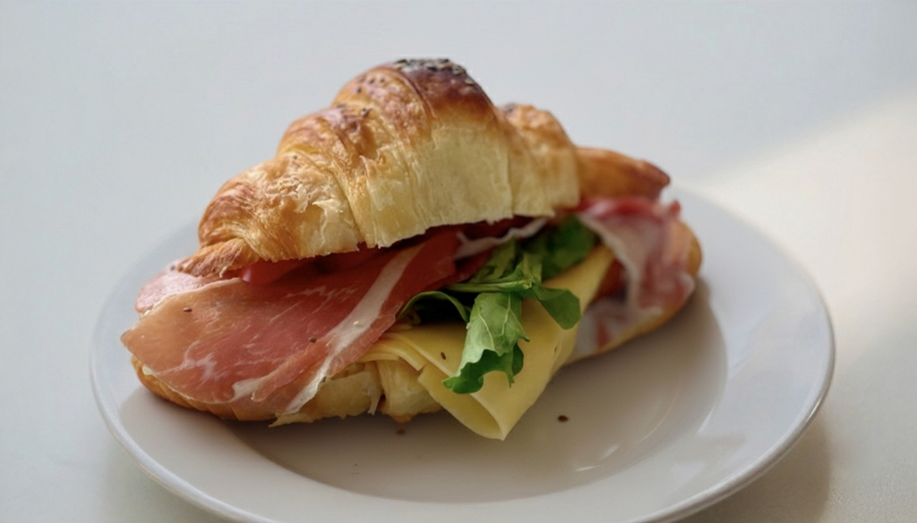 Croissant + Jamón crudo + Rúcula + Queso + Palta