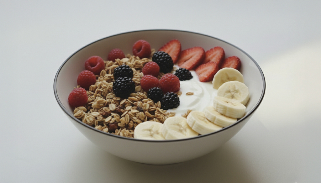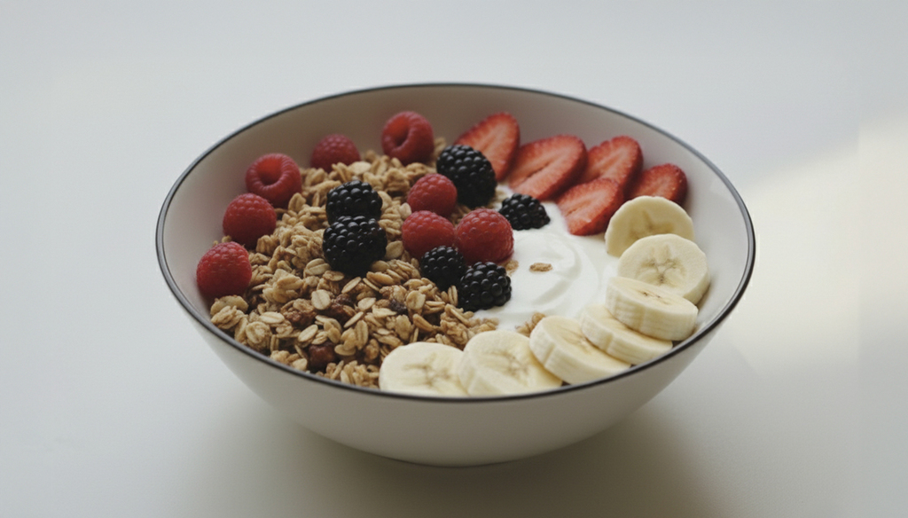 Yogurt natural + Granola + Miel + Frutas de estación